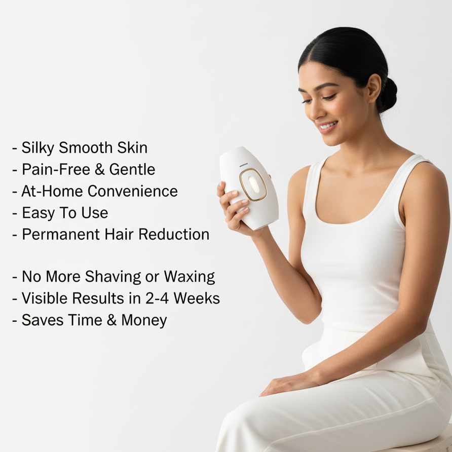 "Tired of the endless hair removal cycle? Break free with lasting smoothness, right from your living room."